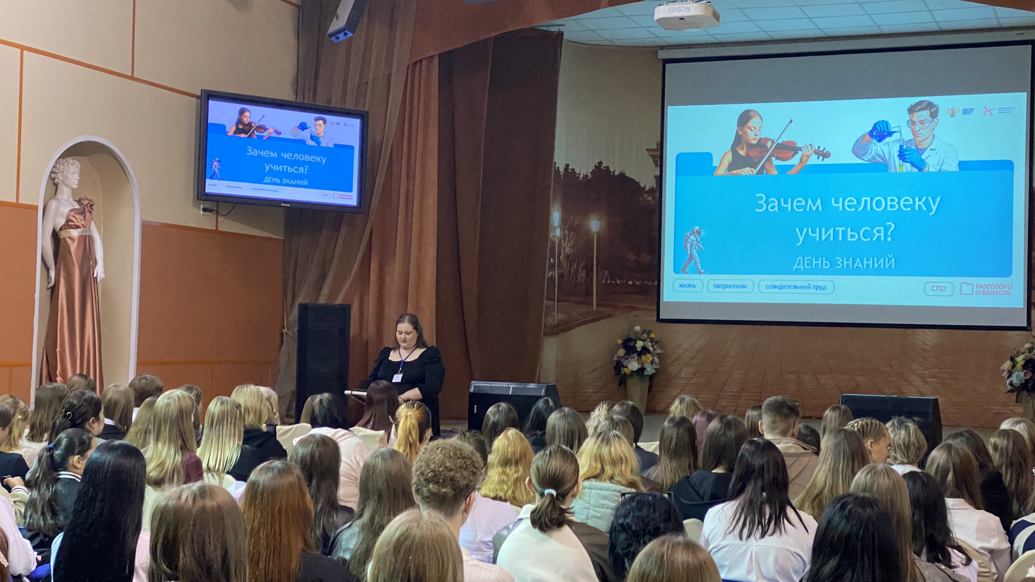 В рамках первого в этом году «Разговора о важном» - «Зачем человеку учиться?», студенты посмотрели видеообращение Президента Российской Федерации В.В. Путина, советник директора по воспитанию Шимогина А.С. подчеркнула важность непрерывного образования. В холлах колледжа были организованы креативные пространства для зоны фотосессии студентов.