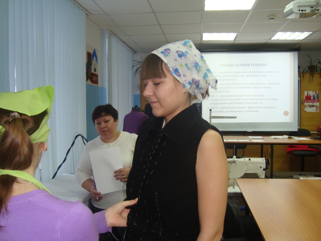 На экзамене студентам было предложено практическое задание: выполнить примерку изделия на фигуре заказчика. После выполнения практического задания студенты отвечали на вопросы экзаменационных билетов. Экзаменационная комиссия оценивала уровень усвоения студентами теоретического материала, умение использовать теоретические знания при выполнении практических заданий, степень сформированности общих и профессиональных компетенций, готовность обучающихся к выполнению соответствующего вида профессиональной деятельности.