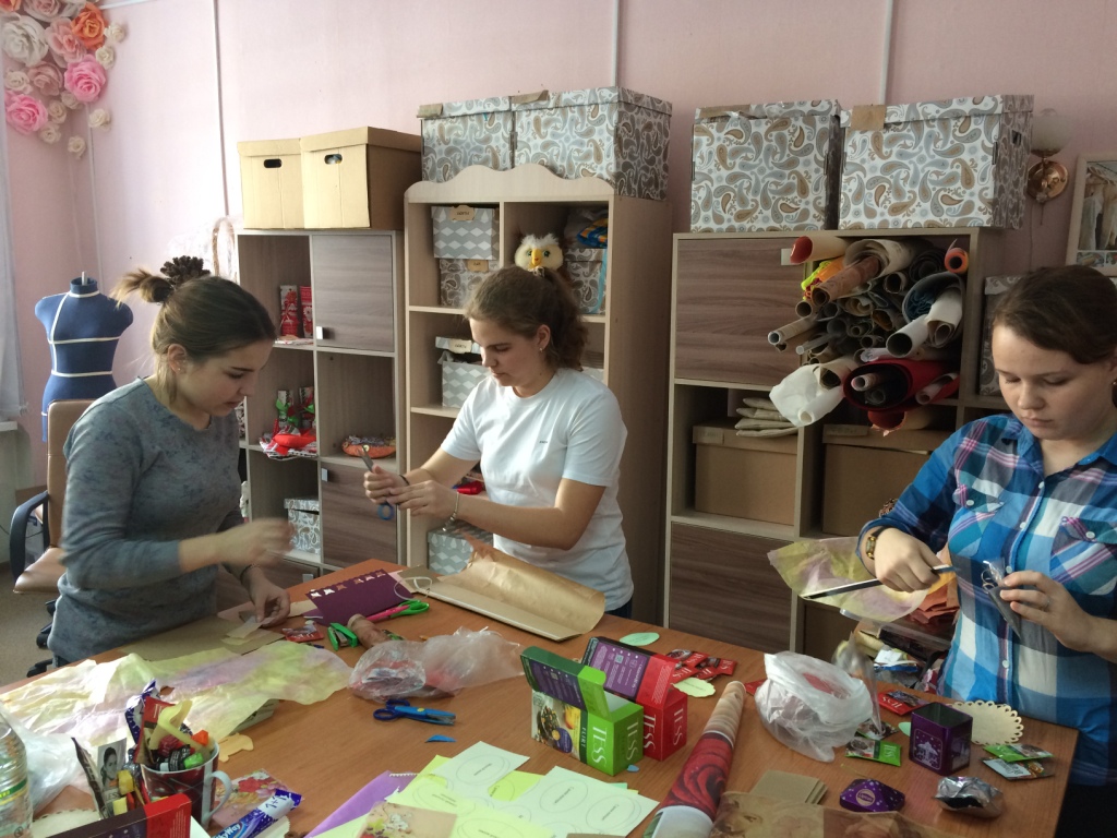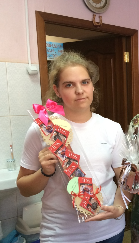 Основной составляющей подарка для мамы выбрали чай. В течение часа студентки под руководством Елены Александровны колдовали над поделками, в итоге сюрпризы для мам были готовы! Теперь осталось дождаться заветного дня и порадовать близкого человека.