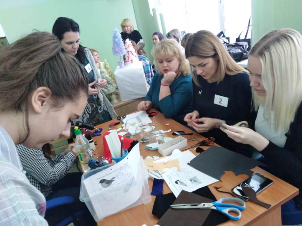 Стоит отметить, что в течение всего конкурного дня для желающих в фойе актового зала колледжа были организованы мастер-классы по созданию мягкой броши «Снегирь» и декоративной новогодней елочки из текстиля.