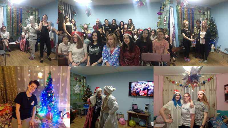 Общежитие НКЛПиС по ул. Зорге, 52 к встрече Нового года подготовилось заранее: нарядили ёлку, украсили комнаты и коридоры, сшили новогодние костюмы, праздничные украшения смастерили своими руками. Артисты из театральной студии «Вдохновение» во главе с Гавриленко Юлией продумали праздничную развлекательную программу: выучили стихи, подготовили различные конкурсы, игры. А о призах позаботились воспитатели общежития Кейян Г.А. и Горелова Л.И.