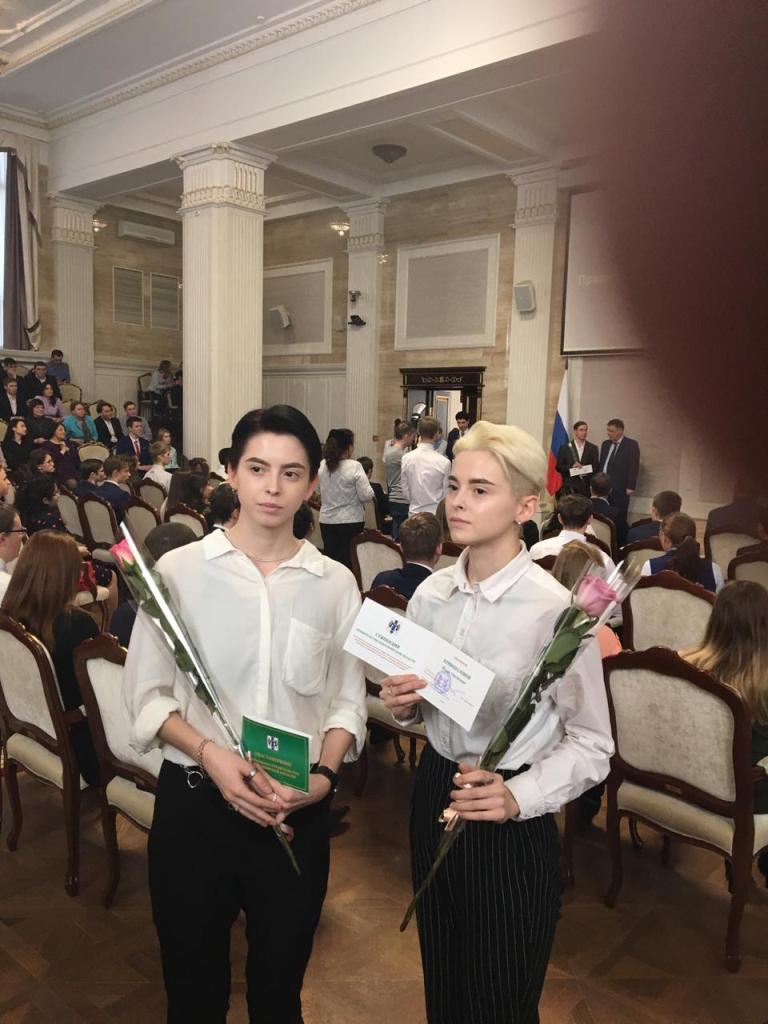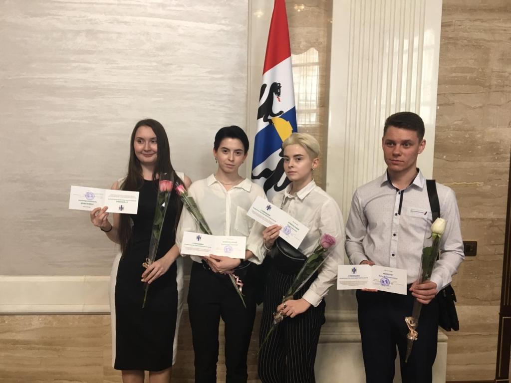В число лучших студентов средних профессиональных учебных заведений области, удостоенных этой награды, вошли и студенты Новосибирского колледжа легкой промышленности и сервиса, обучающиеся по специальности «Монтаж и техническая эксплуатация промышленного оборудования» и «Конструирование, моделирование и технология швейных изделий». Министр образования Новосибирской области Сергей Федорчук вручил удостоверения стипендиатов Правительства НСО Мамцову Артёму (гр. 2Мх-9), Атанасовой Екатерине (гр. 2К-9), Кривопаловой Юлии и Кривопаловой Екатерине (гр. 3К-9).