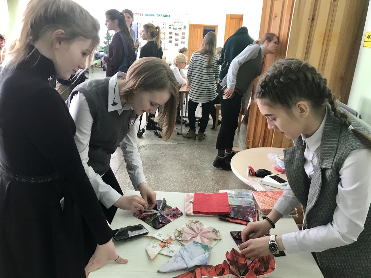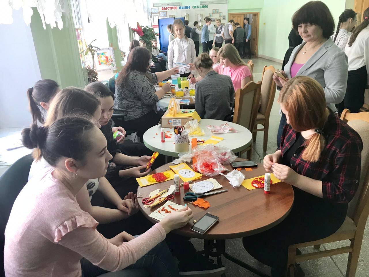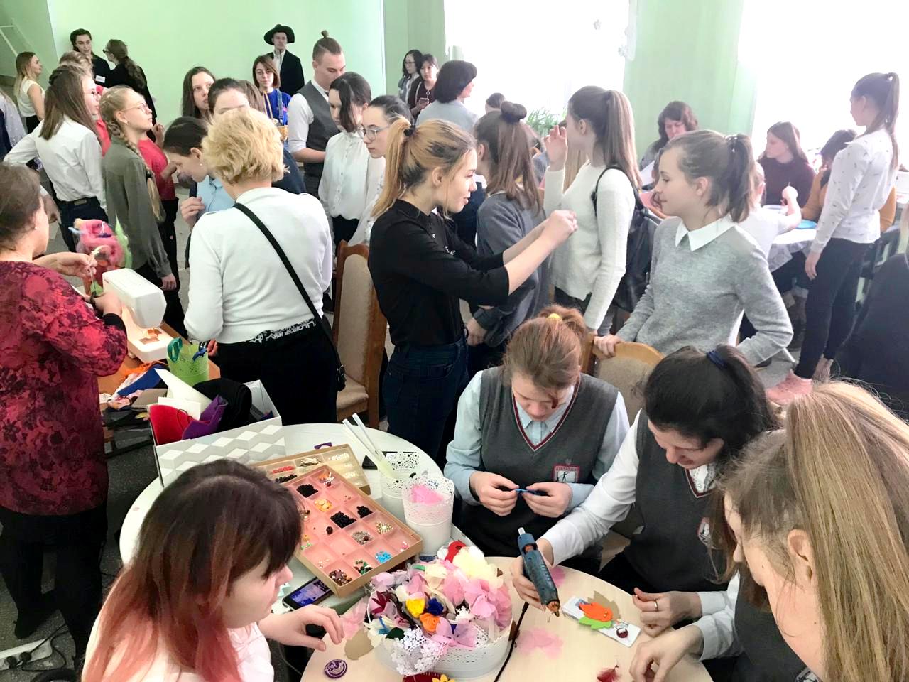 В фойе актового зала развернулись мастер-классы, в которых школьники также смогли поучаствовать. С помощью ведущих специалистов И.Г. Лаптевой, Е.А.Богдановой, Н.В.Величко они занимались росписью по шелку, учились создавать аксессуары для одежды, а студенты из гр. 2ГСд-9 обучали ребят делать фигурные салфетки для сервировки стола.