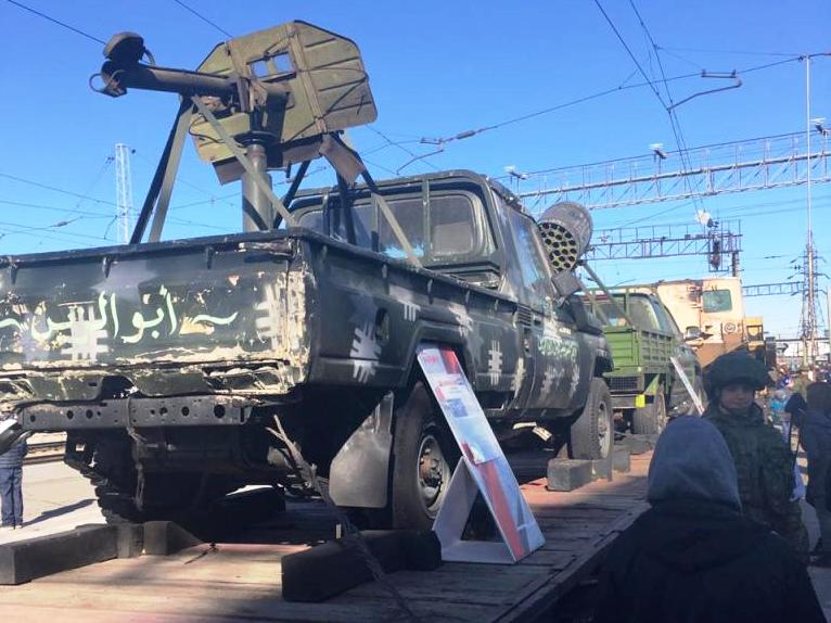 В Новосибирск привезли 20 платформ состава с трофейными образцами различной военной техники, беспилотников, а также холодного и огнестрельного оружия. О вооружении жителям рассказывали военнослужащие, выполнявшие специальные задачи в Сирии.