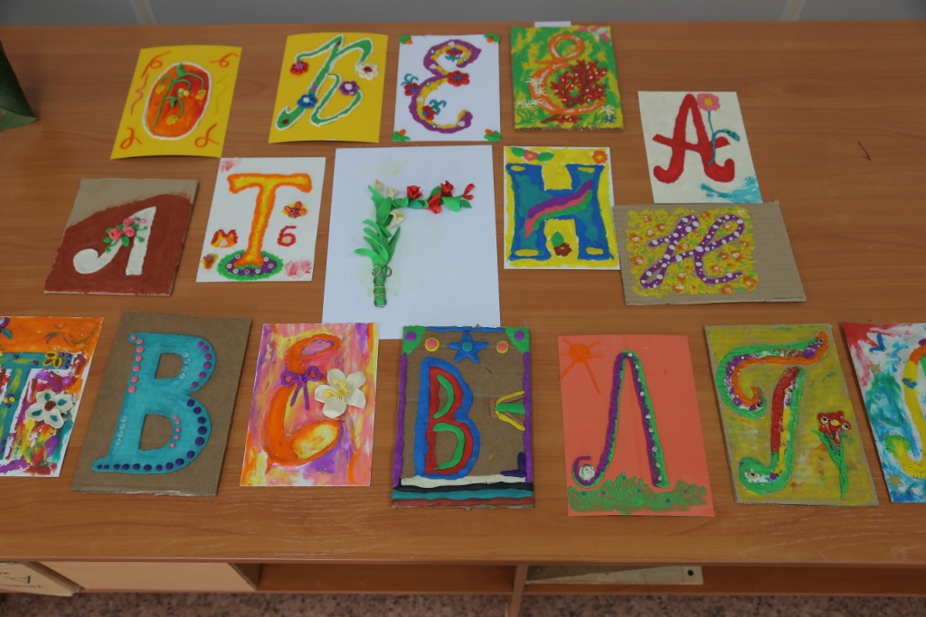 Елена Александровна продолжила занятие и предложила педагогам освоить технику пластилинографии. Используя различные приемы и техники, педагоги создали своими руками панно с изображением первой буквы своего имени.