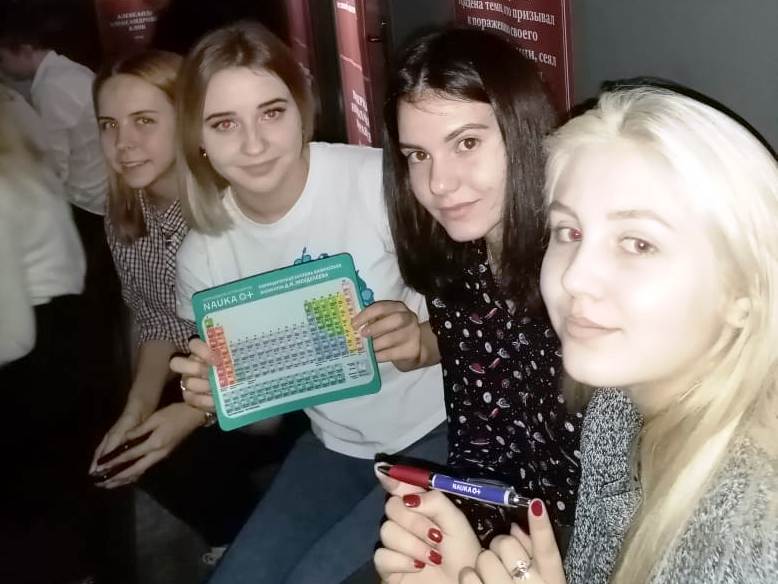 Студенты группы 1ГД-9 в рамках VІІ Фестиваля науки Новосибирской области «NAUKA 0+», посвященного 150-летию открытия Периодического закона химических элементов имени Д. И. Менделеева побывали в Историческом парке «Россия – Моя история», прослушали курс лекций «Такие разные Менделеевы», приняли участие в интерактивной игре «Менделеевские среды». На память у студентов остался приз – коврик для компьютерной мышки с изображением периодической системы элементов за активность в игре.
