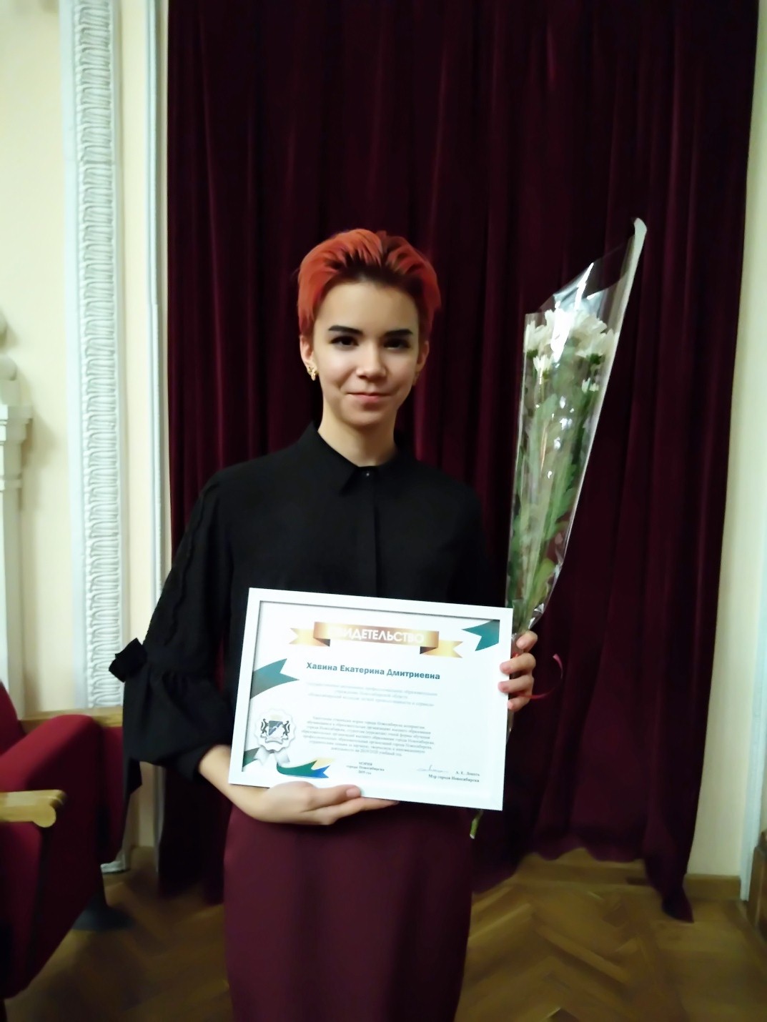 19 ноября 2019 года в камерном зале Новосибирской филармонии состоялось вручение свидетельств стипендиатов мэрии города Новосибирска.