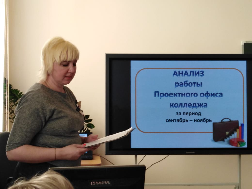 Второй вопрос педагогического совета - успешность работы проектного офиса: формирование проектной культуры как части корпоративной. Директор по проектному управлению (терминология проектного менеджмента) Ефанова Л.В. провела ретроспективу педагогического совета годичной давности, на котором было принято решение о разработке локального акта, регламентирующего проектное управление и создание в колледже проектного офиса