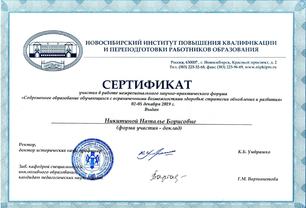 Ø Вручение сертификатов Министерства образования Новосибирской области.