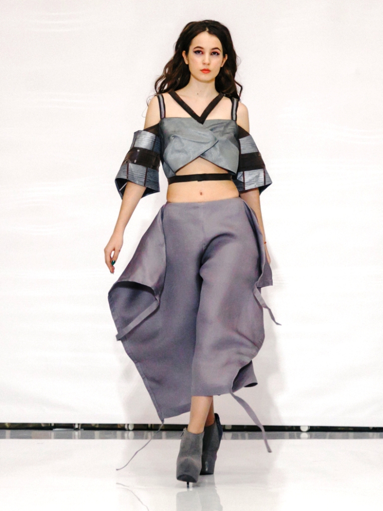Конкурсная программа была очень обширной и интересной, модели на подиуме продемонстрировали множество креативных коллекций в различных стилях: спортивный, романтический, этнический. Нам особенно понравилась единичная модель черного пальто-трансформера, в котором можно менять длину от короткой до длинной и наоборот, с ярким красным принтом в виде сердца, который при повороте меняется на мужской портрет. Благодаря конкурсу у нас появилась возможность поразмышлять над тем, что хочет дизайнер донести через свою коллекцию.