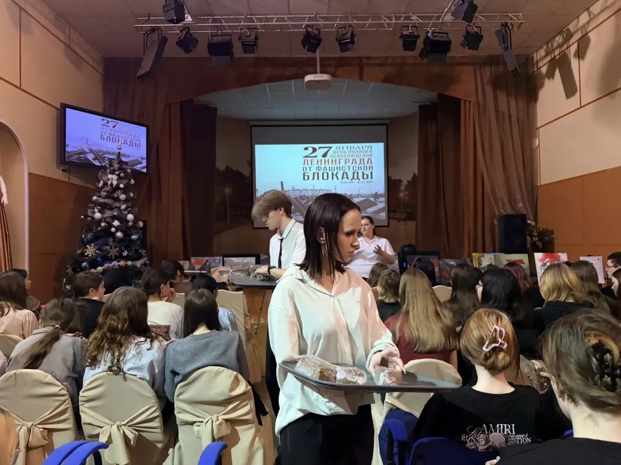Каждому студенту был выдан кусочек хлеба весом 125 граммов — именно такое количество получали жители блокадного Ленинграда в период блокады.